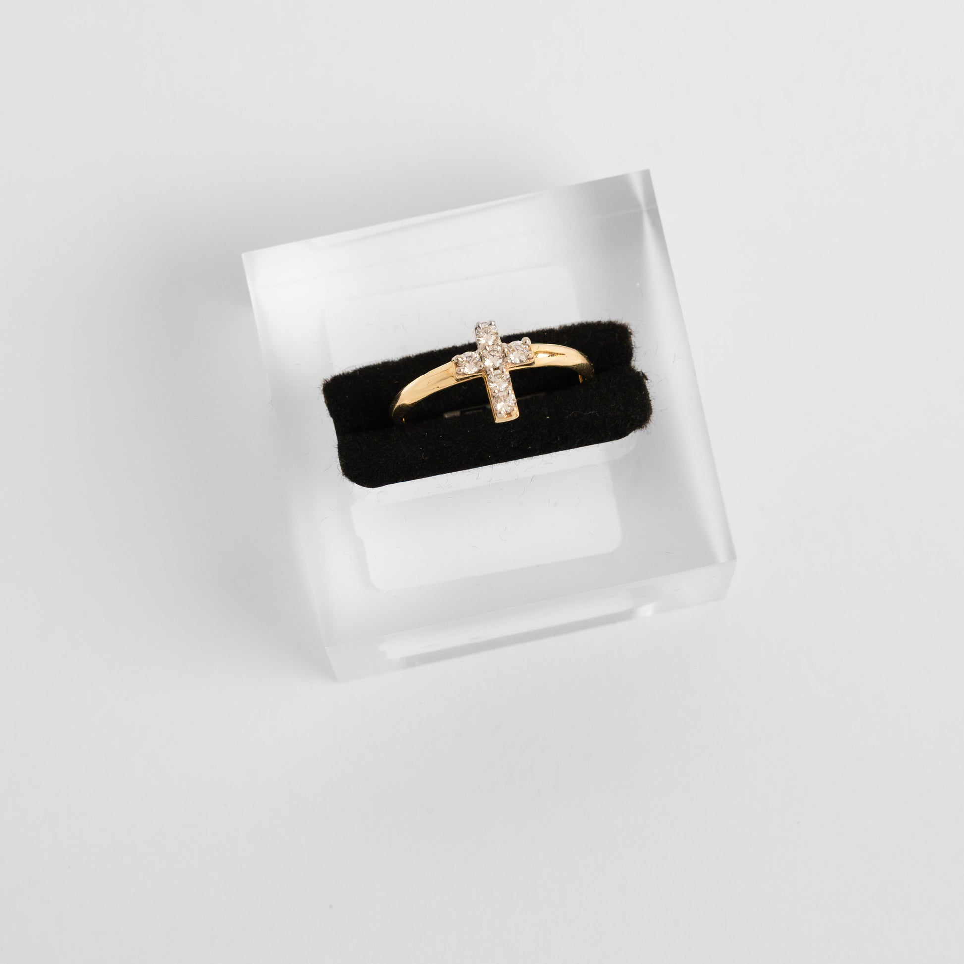 14k Gold ring lab diamond in the cross center